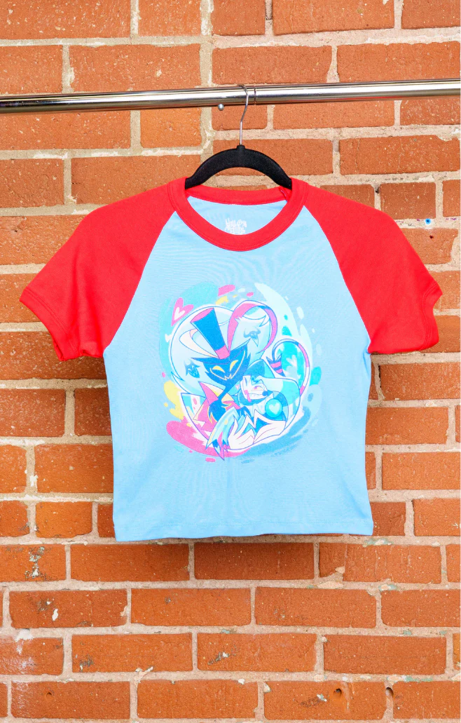 Does your love do froggie little flips? Want to represent a passion that fills the heart of both lust and the silly little jester he fell for? Then celebrate Pride with this Ozzie & Fizz Micro Ribbed Raglan Baby Tee! This flirty, form-fitting top showcases Fizzmodeous with playful raglan sleeves and a deliciously soft ribbed texture that hugs in all the right places!