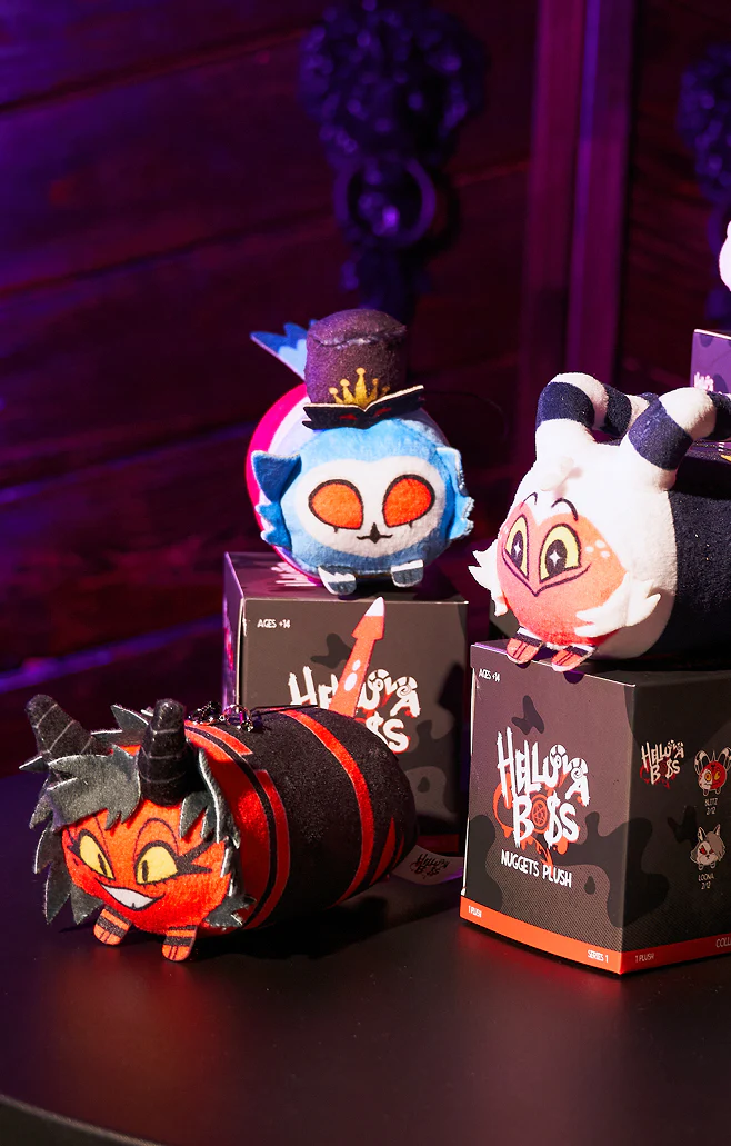 Introducing HELLUVA NUGGETS! What the f*#k is a Helluva Nugget, you may ask? It’s a friend, a buddy, occasionally a silly little guy, possibly a dangerous enemy if you cross them, but most importantly they’re an exciting mini plush surprise for YOU to reveal! Helluva Nuggets are our very first BLIND BOX series! This first wave includes Blitz, Stolas, Millie, Moxxie, Loona, Verosika, and a NUGGET OF MYSTERY! Collect them all, swap them with your friends or pelt them at your foes, dunk them in your choice of sauce (we don’t encourage this but we’re also not your mom), and be the first to find the rarest MYSTERY Nugget!Â