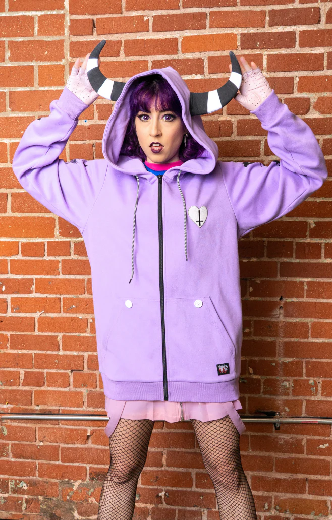 Don’t just desire the thing - BECOME the Thing! This Zip-up Hoodie will fulfill all your long-time extremely niche desires to look like your favorite hard to win carnival stall plushie! With a soft cozy feel, sharp graphics, and horned hood this Thing hoodie will have you umm…making…whatever sound one of these things makes. A joyful one. The kind you make when you’re happy you bought a cool hoodie. That one.